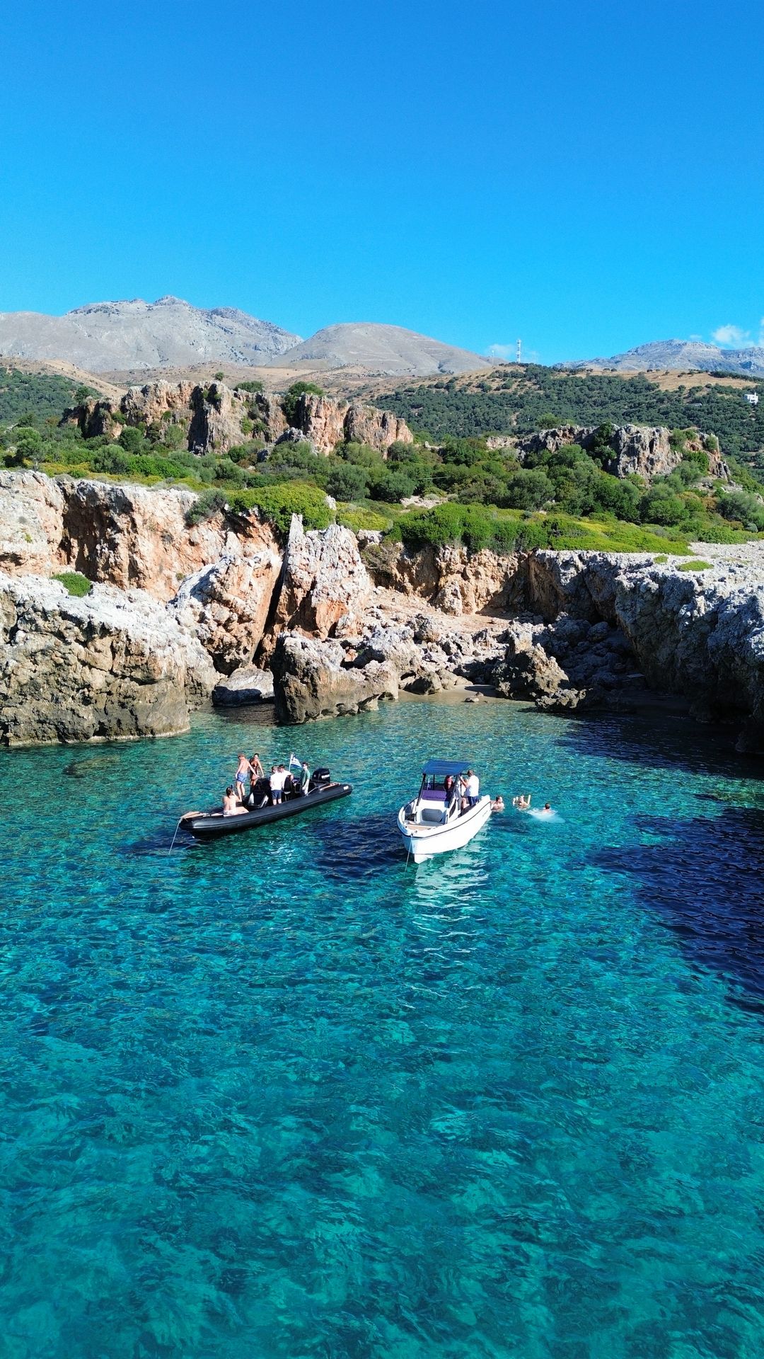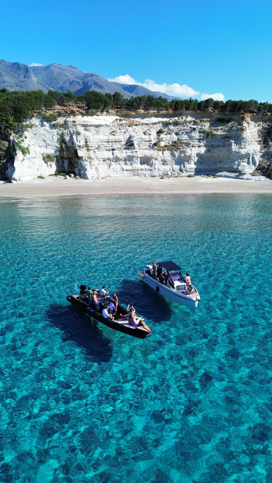 Both boats are fast, powerful, and perfect for exploring the hidden beaches and secret coves of South Crete. Cruising along the coastline on these boats is pure freedom and fun — the kind of experience you’ll remember forever.