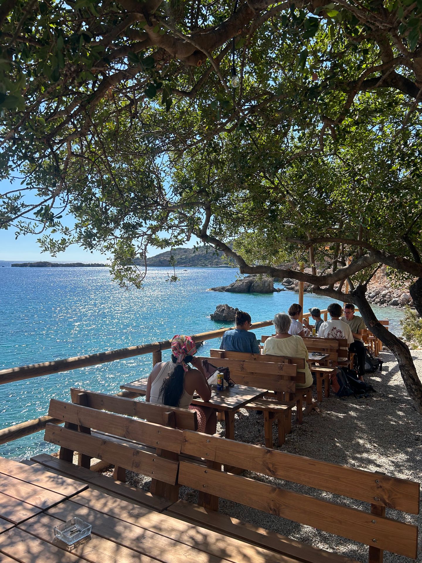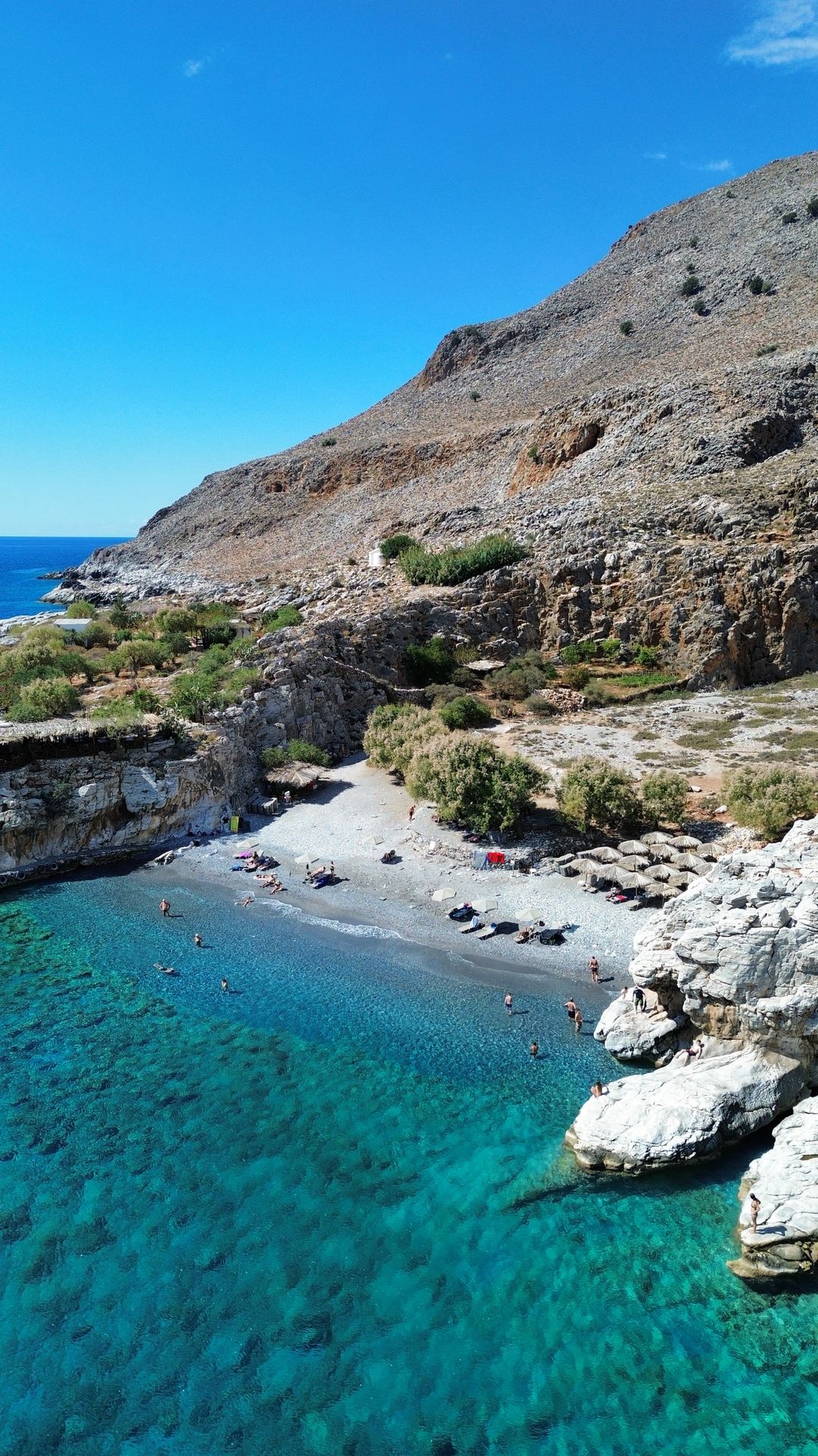 Just before reaching Loutro, you can also choose to stop at Vrachokipos, a hidden gem of a seaside taverna built right along the E4 hiking trail. It’s a truly unique place — the owner can even pick you up from Loutro with his small boat if you wish to dine there. The food is fresh, local, and made with love, and the views are absolutely breathtaking. Simply ask your captains, Tassos or Frank, if you’d like to include this stop — they’re always flexible and happy to make your day unforgettable.