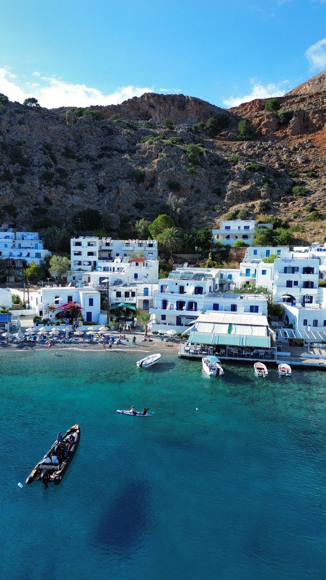 Another highlight is Loutro, one of the most picturesque villages in Crete. With its whitewashed houses, blue-painted windows, and peaceful setting, it’s like stepping into a postcard. Loutro is only accessible by boat or a long hike, which makes it feel even more special. You’ll have time to enjoy lunch in one of the local tavernas and stroll through the village. (Lunch is not included in the tour price.)